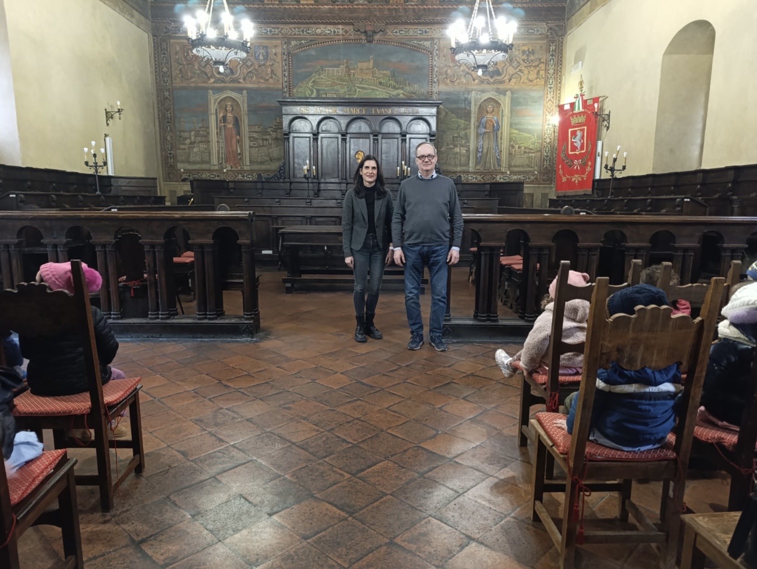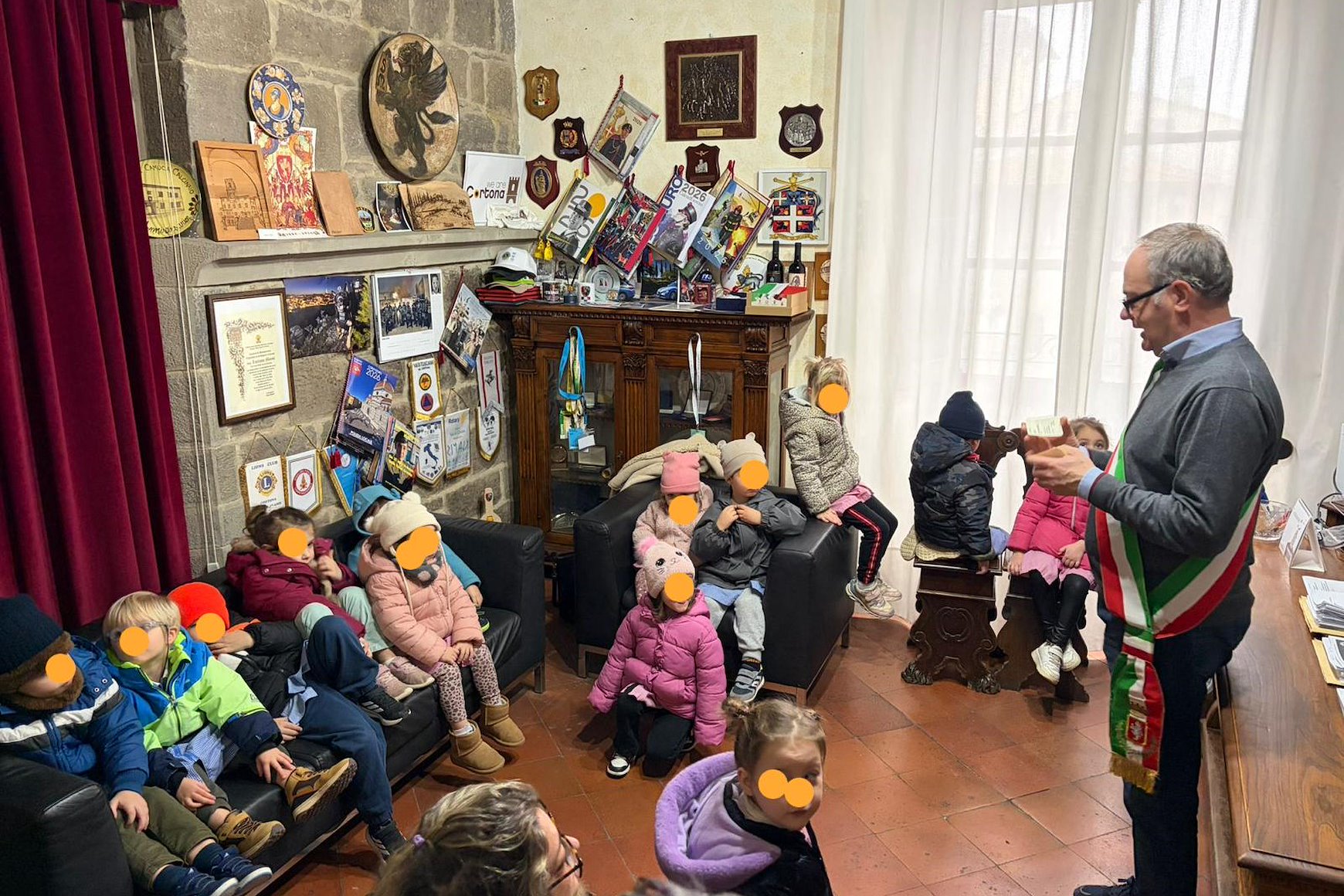 Un patentino per i piccoli cittadini, un attestato simbolico che ne riconosce l’avvio di un percorso di conoscenza e partecipazione nei confronti delle istituzioni. Il tesserino è stato consegnato questo 5 febbraio durante la visita delle bambine e dei bambini della scuola dell’infanzia di Pergo. Il gruppo, accompagnato dalle insegnanti, è stato ricevuto dal sindaco Luciano Meoni e dall’assessore all’Istruzione, Silvia Spensierati. Dopo un breve tour all’interno del palazzo comunale, la comitiva studentesca ha visitato la sala del Consiglio comunale.
