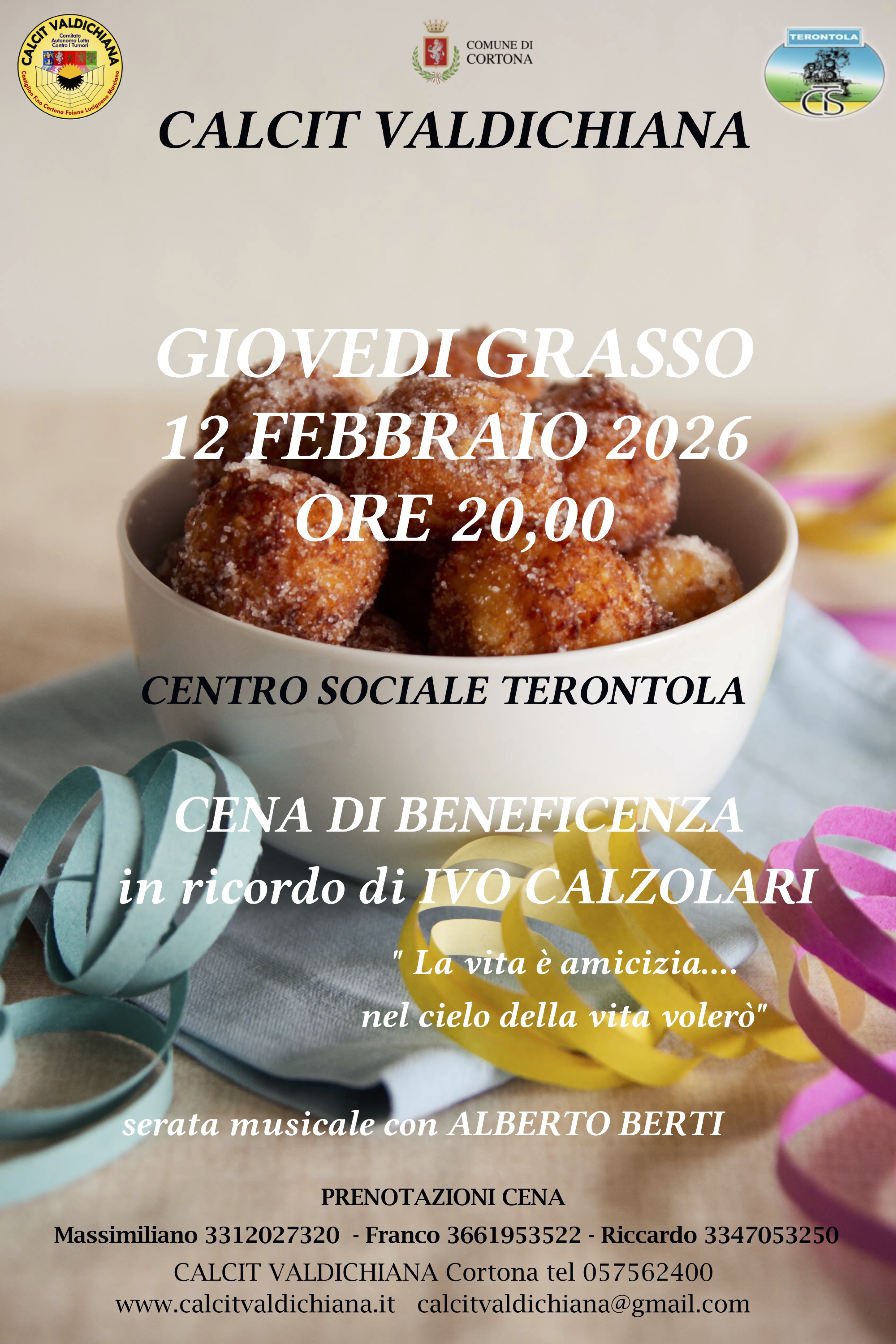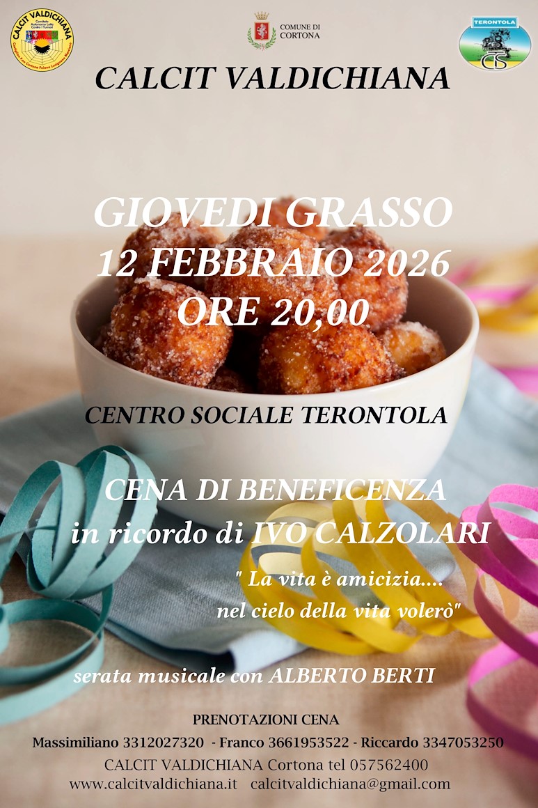 In occasione del Giovedì Grasso il Calcit Valdichiana propone un appuntamento conviviale con musica per ricordare il compianto presidente del centro di aggregazione sociale