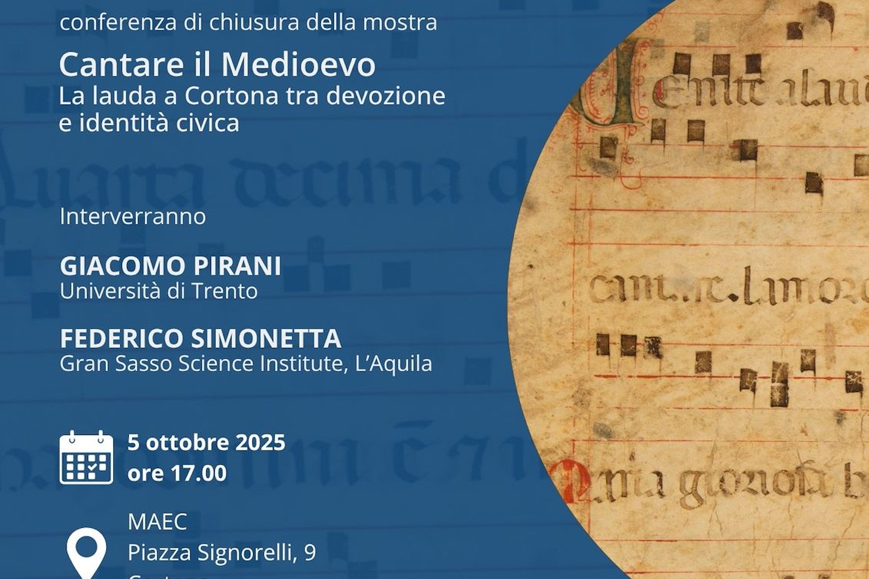 conferenza di chiusura della mostra Cantare il Medioevo La lauda a Cortona tra devozione e identità civica